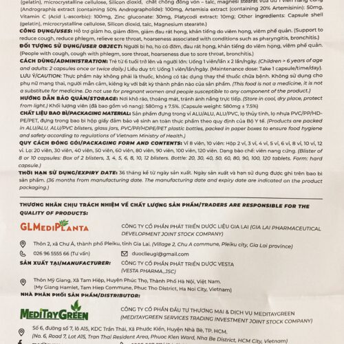 - Hỗ trợ giảm ho, giảm đờm, giảm đau rát họng, khản tiếng ho viêm họng, viêm phế quản.