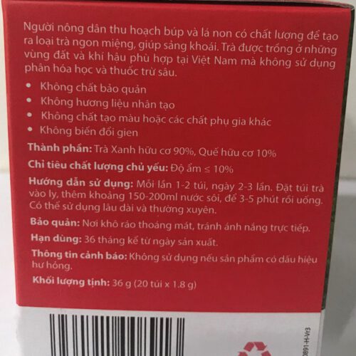 Người nông dân thu hoạch búp và lá non có chất lượng để tạo ra loại trà ngon miệng giúp sảng khoái. Trà được trồng ở những vùng đất và khí hậu phù hợp tại Việt Nam mà không sử dụng phân hóa học và thuốc trừ sâu.