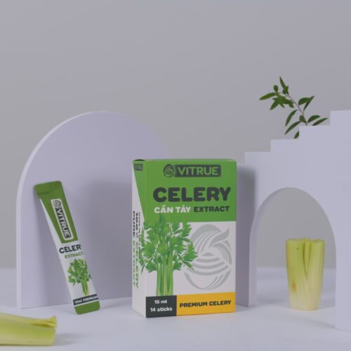 VITRUE CELERY – CẦN TÂY được chiết xuất từ 100% Cần tây ( Celery) cô đặc, Sodium benzoate, Steviol glycosid từ Stevia.